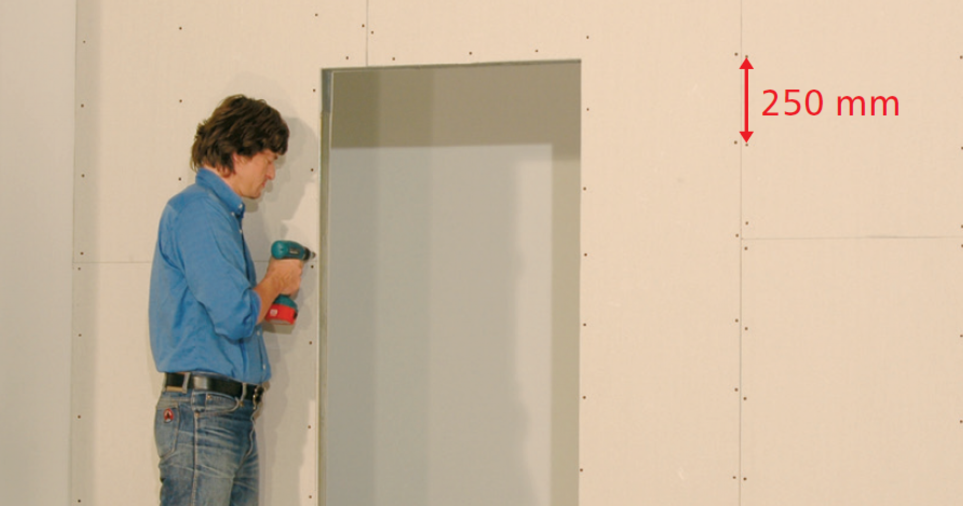 Hézagoljunk a lapok között Super, Vario vagy Promix Mega anyagokkal és hézagerősítő szalaggal. Gletteljük le a csavarfejek helyét.