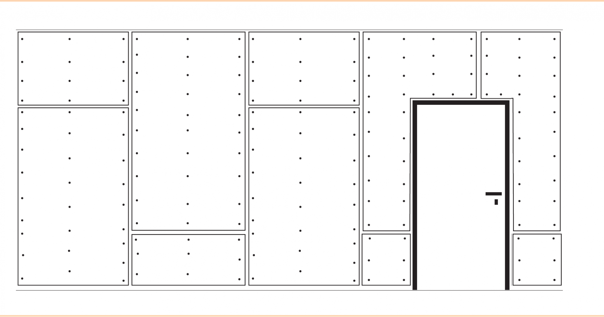 lapok elhelyezése min. 400 mm eltolással csavartávolság 250 mm ajtótok körül "L" alakú táblák